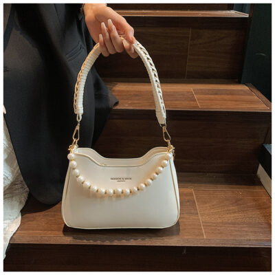 Túi cầm tay thời trang Niche 2023 dây xích đơn giản mới Túi Messenger ngọc trai phổ biến túi đeo vai sát nách phong cách nước ngoài