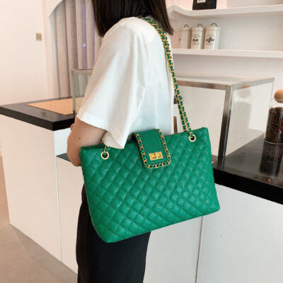 Túi tote nữ 2023 mới công suất lớn hình thoi chỉ thêu túi đeo vai học sinh lớp túi đi làm túi xách
