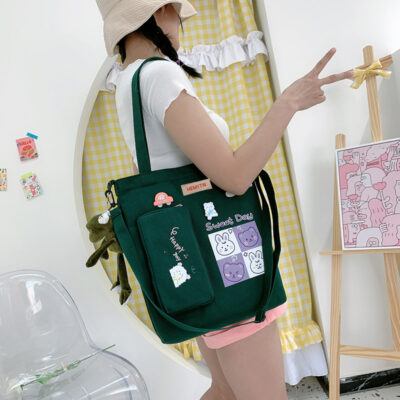 Túi vải Nhật Bản dễ thương 2023 túi đeo vai nữ nhỏ tươi phiên bản Hàn Quốc Túi đeo vai học sinh đa năng