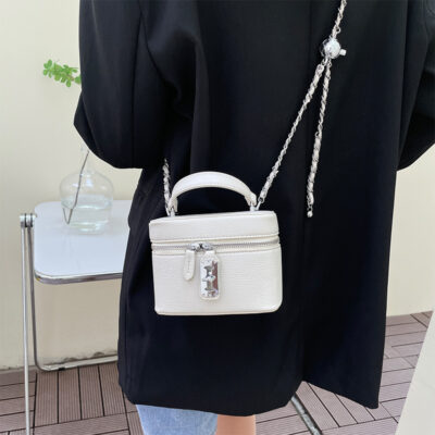 Vải thiều họa tiết dây chuyền khóa hộp túi vuông nhỏ nữ 2023 mới xách tay 1 vai túi Túi xách nữ