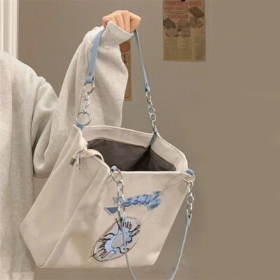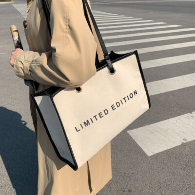 Túi đeo vai vải canvas in chữ cá tính hợp thời trang dành cho nữ mùa xuân mới 2023 Túi xách đeo vai sức chứa lớn