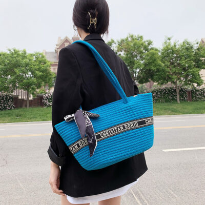 Mùa hè mới đơn giản và hào phóng túi vải nữ đeo vai túi xô dệt thủ công túi tote rơm túi đi biển