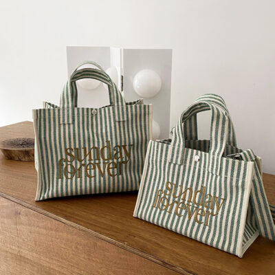 Túi xách nữ ins mới của nhà sản xuất túi tote sức chứa lớn túi đeo vai Hàn Quốc túi sinh viên túi vải sọc