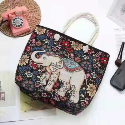 Túi vải thêu hình con công hai mặt phong cách dân tộc túi dây dày nữ phát sóng trực tiếp túi vải canvas thêu con công dung tích lớn túi đeo vai gian hàng