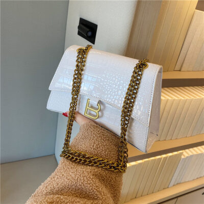 2023 mới phù hợp với túi xách nữ đơn giản chuỗi xếp li họa tiết cá sấu túi đeo vai màu sắc tinh khiết túi xách tươi mát và ngọt ngào