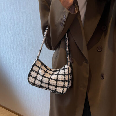 Túi đeo sát nách Shangxin phổ biến của Pháp mùa thu đông kiểu Pháp dành cho nữ 2023 túi đeo vai kẻ sọc len hợp thời trang phong cách cổ điển mới phù hợp với tất cả các trận đấu