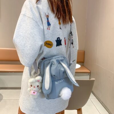Bán buôn túi học sinh bé gái 2023 mới túi bé gái dễ thương hoạt hình thỏ búp bê Messenger túi vuông nhỏ