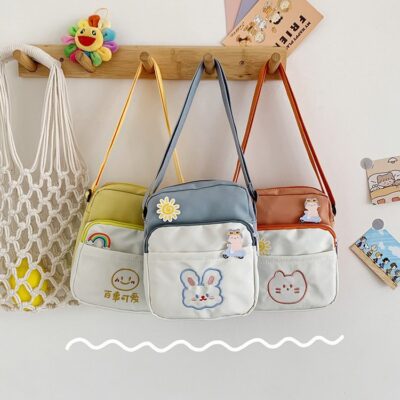 Nhật Bản Bông Tai Kẹp Phong Cách Hoạt Hình Bé Gái Túi Vải Mới Ins Mềm Mại Dễ Thương Bé Gái Túi Đeo Vai Thời Trang Túi
