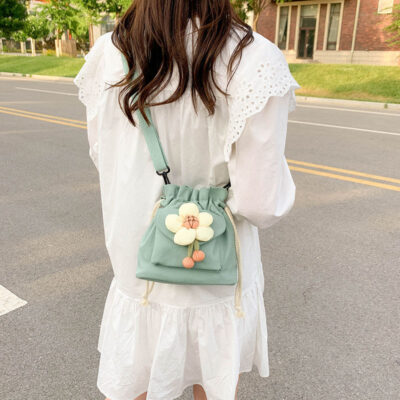 Nữ Mori Pháp ngọt ngào đi biển canvas đeo vai túi nhỏ phổ biến dễ thương túi đeo chéo hoa dễ thương