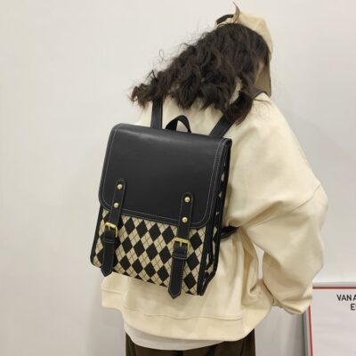 Cặp học sinh sức chứa lớn mới 2023 phiên bản Hàn Quốc ba lô pu lưới hình thoi Phiên bản Hàn Quốc của xu hướng túi nữ đi làm