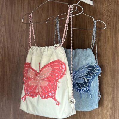 Thiết Kế Ban Đầu Thắt Nơ Túi Denim Nữ Tua Rua Dây Chuyền Ba Lô Công Suất Lớn Thêu Lang Thang Có Túi