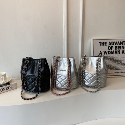 2023 Châu Âu Mới Túi Nữ Thích Hợp Túi Dây Xích Thời Trang Bong Bóng Da Cừu Đeo Vai Túi Bucket Túi