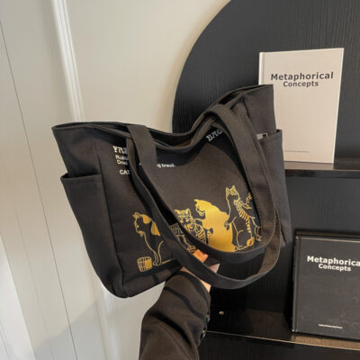Túi vải có họa tiết thích hợp 2023 mới phù hợp với túi tote dung tích lớn phong cách nước ngoài hoạt hình ba lô thông thường túi nữ cỡ lớn