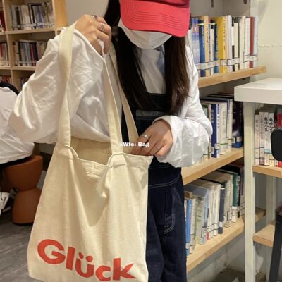 Retro ins Bắc Âu gió bảng chữ cái canvas đeo vai túi tote Glück chúc may mắn cô gái nghệ thuật học tùy biến