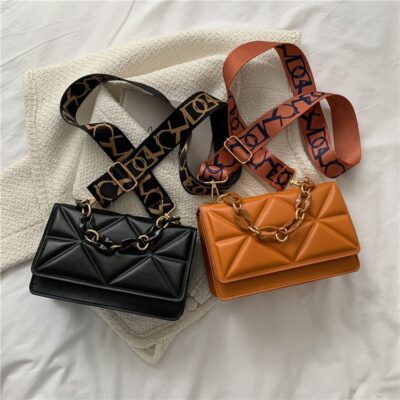 Túi đeo thông thường cho nữ mùa thu 2023 mới thời trang hợp thời trang lưới đỏ đeo vai túi vuông nhỏ túi đeo chéo băng thông rộng đơn giản