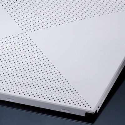 Nhà sản xuất Phật Sơn trần nhôm sợi thủy tinh đục lỗ nhôm tấm vuông hấp thụ âm thanh trung tâm mua sắm trần hợp kim nhôm composite