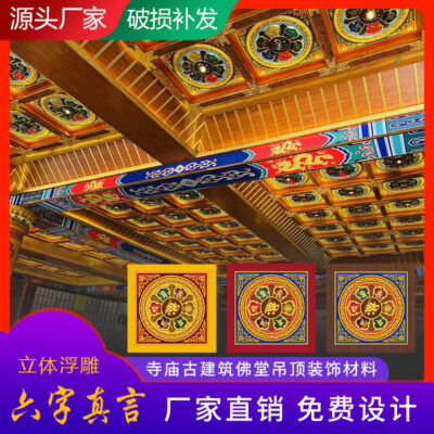 Ngôi chùa cổ trần bằng nhôm hình tam giác phù điêu hoa sen sơn trần hội trường Phật giáo trần phong cách Trung Quốc cải tạo nhà tích hợp trần