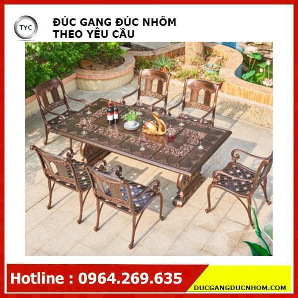 Bàn ghế sân vườn nhôm đúc bàn nướng sân vườn nhập khẩu ngoài trời bền đẹp, th BGSV_1332