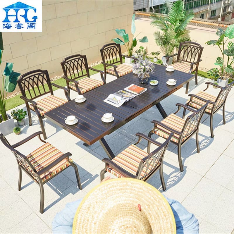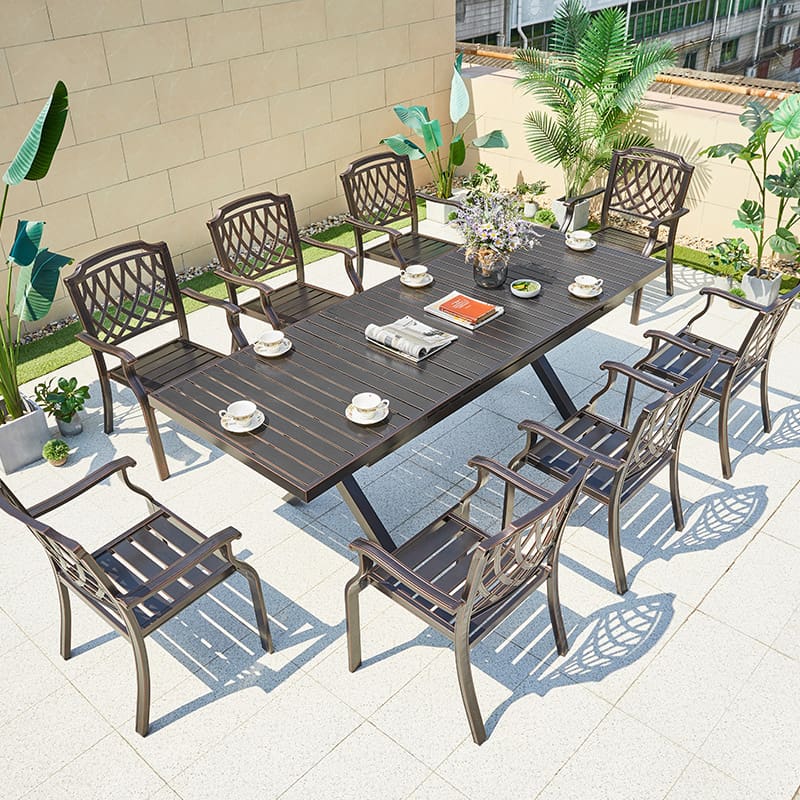 Bàn ghế ngoài trời sân vườn bàn dài nhôm giải ngoài trời bền đẹp, thân thiện BGSV_1058