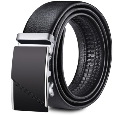 头层牛皮腰带新款纯铜色牛皮自动扣 合金扣二层牛皮年轻人男式裤腰带 工厂直供超纤皮自动扣男士裤腰带