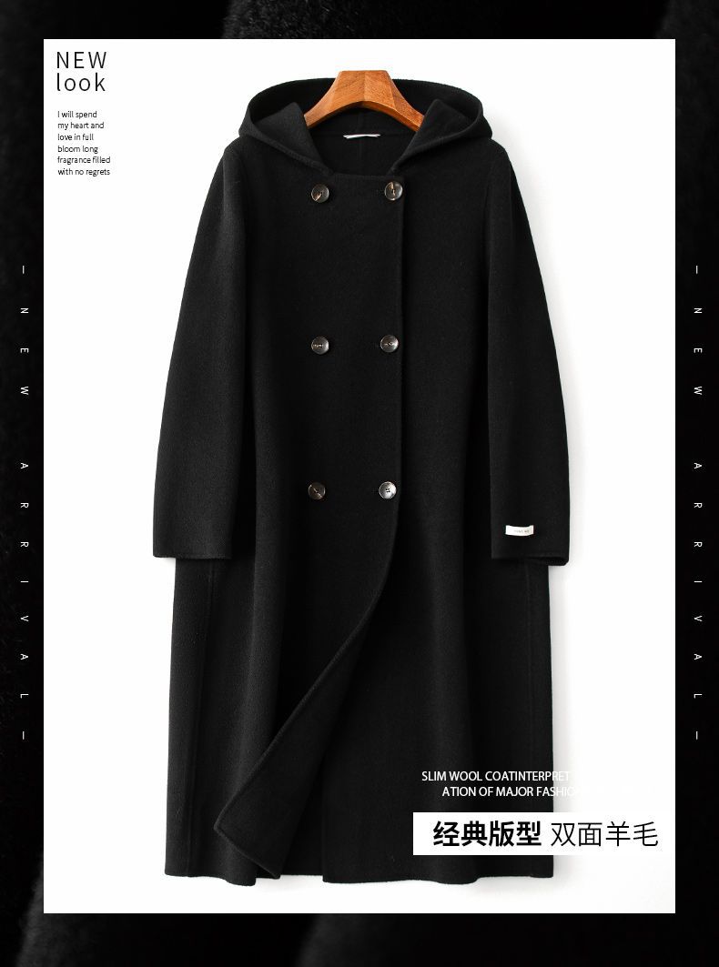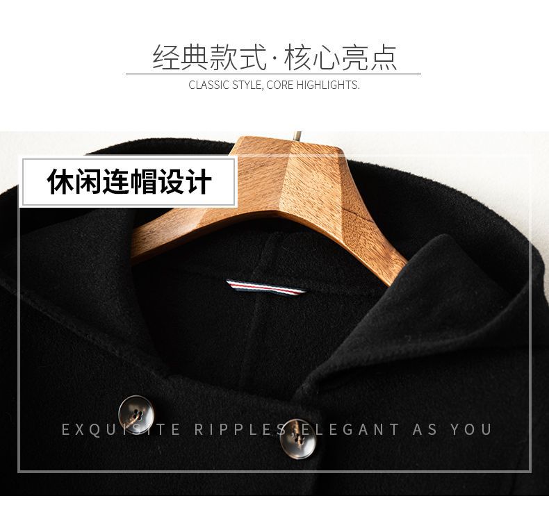 【Hết hàng sẽ không bù lại】Áo khoác len hai mặt mới mùa xuân 2023 áo khoác nữ có mũ trùm đầu dài thường ngày