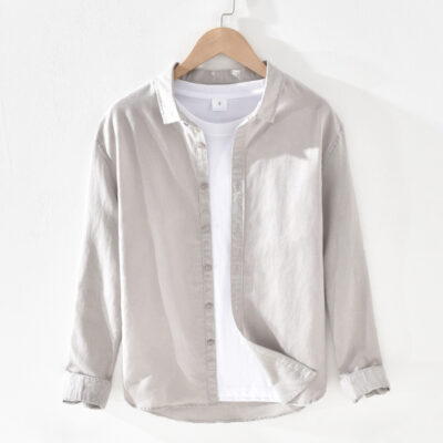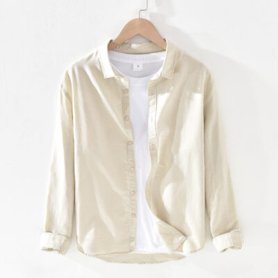 001 Cơ Bản Nam Vải Lanh Cotton Dài Tay Văn Học Rời Thoáng Khí Cổ Vuông Áo Sơ Mi Linen Cho Nam