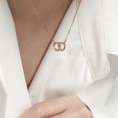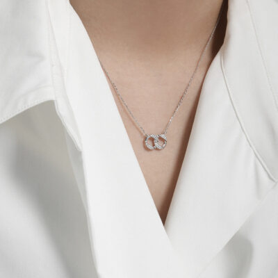 0130 Phiên bản Hàn Quốc của ins niche thiết kế chuỗi vòng đôi tối giản khảm kết cấu zircon Vòng cổ bạc 925 sterling cho nữ