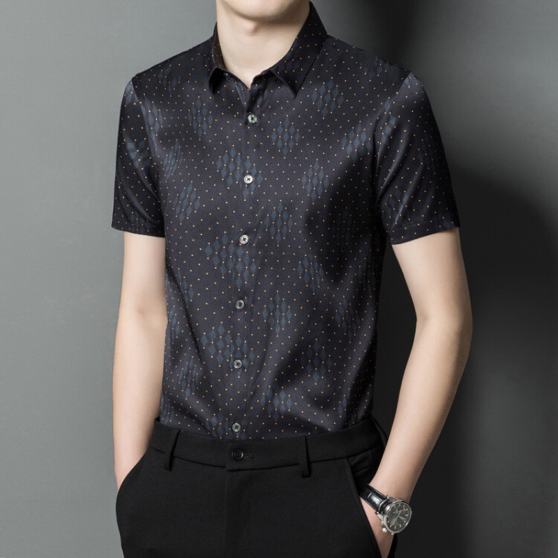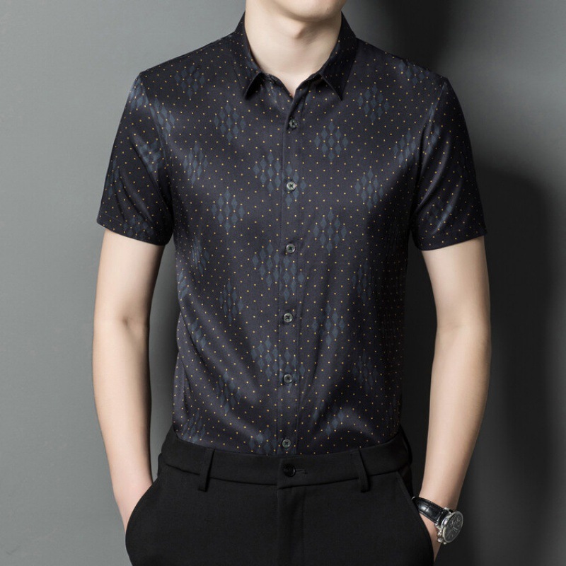 100 dâu tằm tơ ngắn tay áo sơ mi nam mùa hè công sở bình thường không ủi cảm giác mát mẻ áo sơ mi lụa in hình tự trồng hợp thời trang