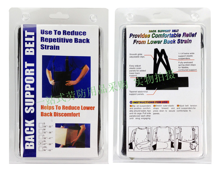 产品材质:工作护腰带是由优质的弹性材料制成,背部有四根加强型的弹性聚乙烯支撑条;Velcro材质搭扣;