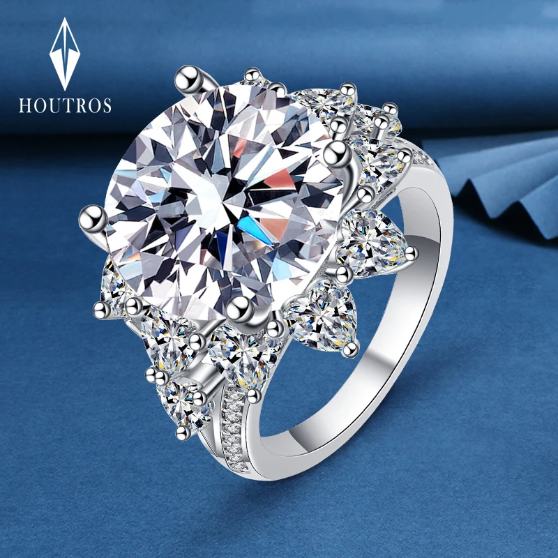 10CT 14mm D Color Moissanite Ring For Women 925 Sterling Silver AU750 Plated Engagement Wedding Bride Diamond Rings with GRA