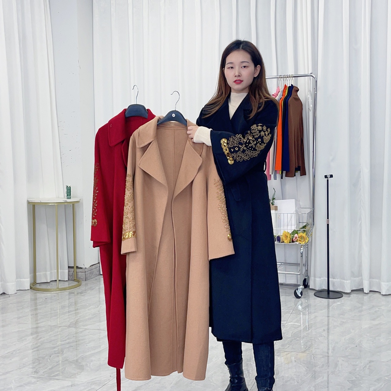 直播发布的商品Giới tính áp dụng: Nữ Độ tuổi áp dụng: Người lớn Màu sắc: Đỏ/Kaki/Đen/Đen Danh mục sản phẩm: Áo khoác len nữ Kích thước: S/M/M