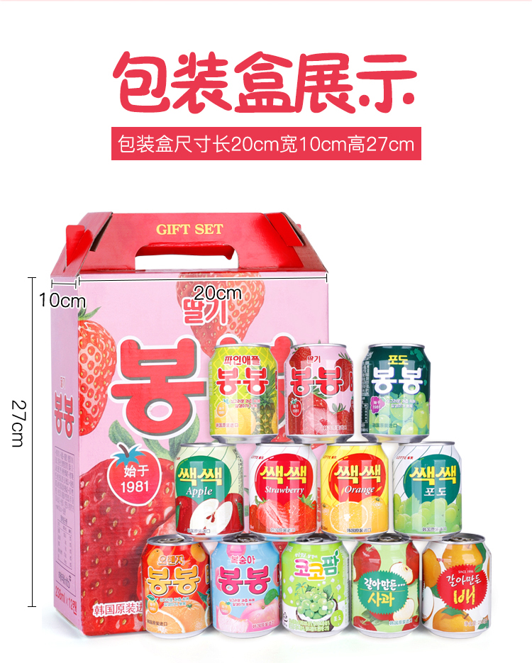 12 lon nước ép bột giấy nhập khẩu Hàn Quốc FCL nước ép xoài đỏ Lotte LOTTE nước ép nho Haitai hương vị hỗn hợp