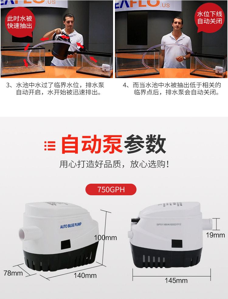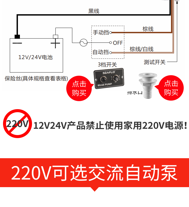 12v24v hoàn toàn tự động bơm đáy tàu bơm thoát nước nhỏ bơm pin du thuyền bơm biển DC bơm chìm