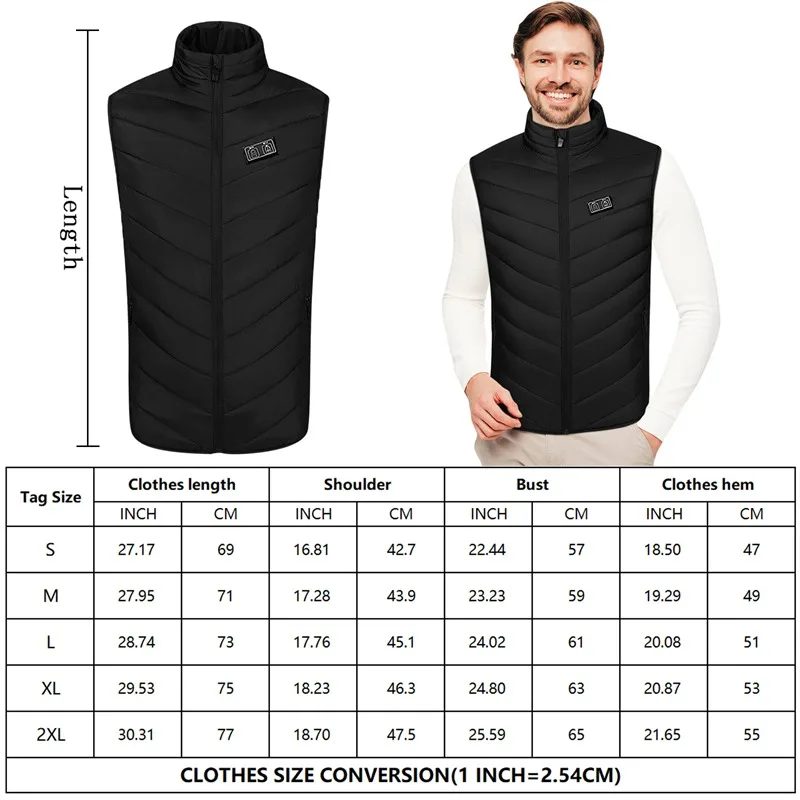 15/9 Khu Vực Làm Nóng Áo Vest Nam Nữ Áo Giữ Nhiệt Mùa Đông USB Sưởi Ấm Áo Vest Tự Làm Nóng Áo Giữ Nhiệt Làm Nóng Xuống Áo Warmte Áo VestMùa áp dụng:Mùa Thu Và Mùa Đông Cảnh áp dụng:Thông thường Loại: Mỏng Phần có thể tháo rời: KHÔNG Loại hoa văn: Trơn Loại khóa: dây kéo Chiều dài quần áo: Thông thường Chất liệu lót: Polyester Mũ trùm đầu: Không Cổ áo: Cổ cao Phong cách: Thông thường Chất liệu: Polyester Tên thương hiệu: Uefezo Xuất xứ :Trung Quốc đại lục Loại sản phẩm:Áo khoác ngoài & Áo khoác Loại áo khoác ngoài:Vest Giới tính: NAM