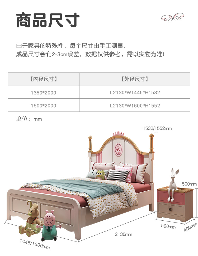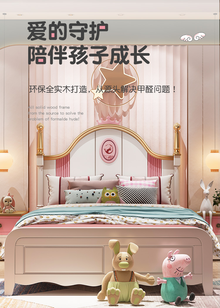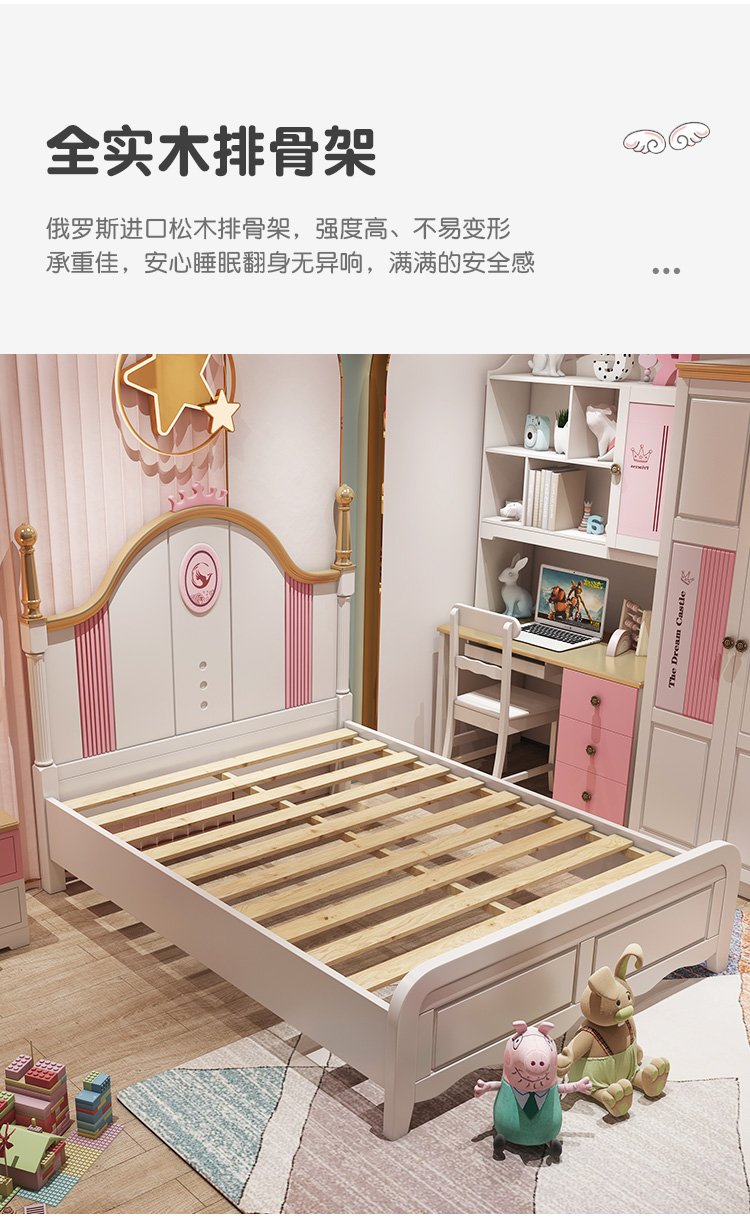 1,5m tất cả gỗ rắn giường trẻ em cô gái giường công chúa cô gái giường đơn phòng ngủ đồ nội thất kết hợp bộ giường trẻ em gái