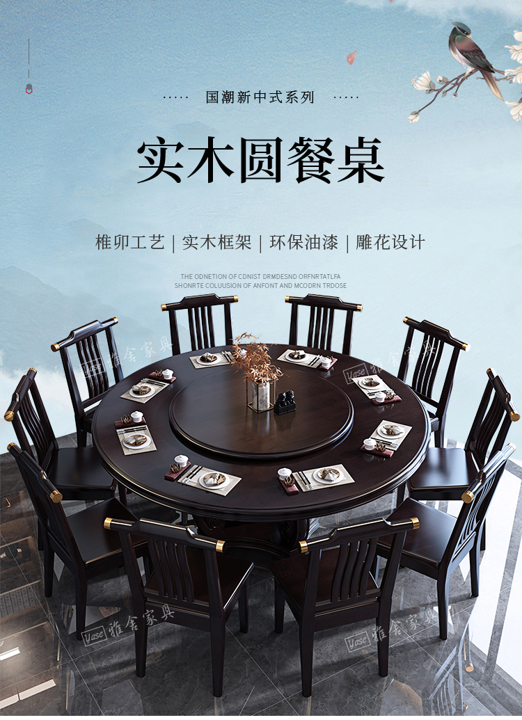1,8m kiểu Trung Quốc mới kết hợp bàn ăn bằng gỗ nguyên khối và ghế kết hợp kích thước khách sạn bàn tròn tại nhà bàn ăn tối giản hiện đại với bàn xoay – Bàn ăn nhập khẩu cao cấp