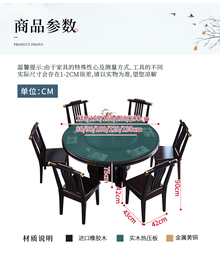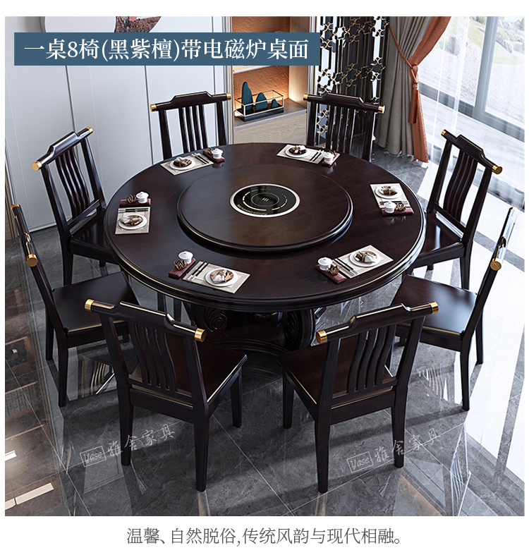1,8m kiểu Trung Quốc mới kết hợp bàn ăn bằng gỗ nguyên khối và ghế kết hợp kích thước khách sạn bàn tròn tại nhà bàn ăn tối giản hiện đại với bàn xoay