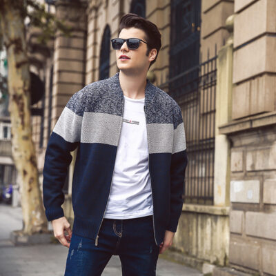 19 mùa thu đông mới áo len nam dáng rộng phiên bản Hàn Quốc cộng với áo len lông cừu cổ bóng chày áo len dài tay áo khoác cardigan nam