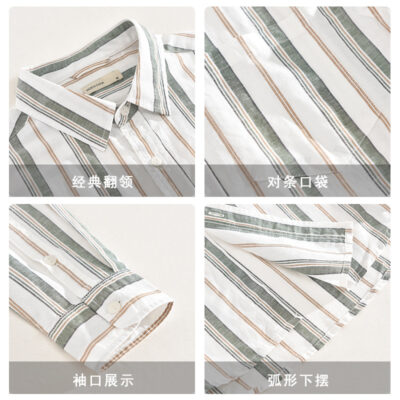 1993 Mùa Thu Mới Nam Áo Sơ Mi Linen Thanh Niên Nghệ Thuật Sọc Cổ Vuông Tay Dài Cotton Và Áo Sơ Mi Linen