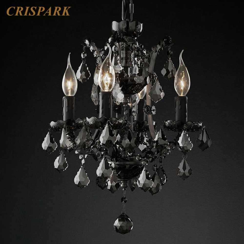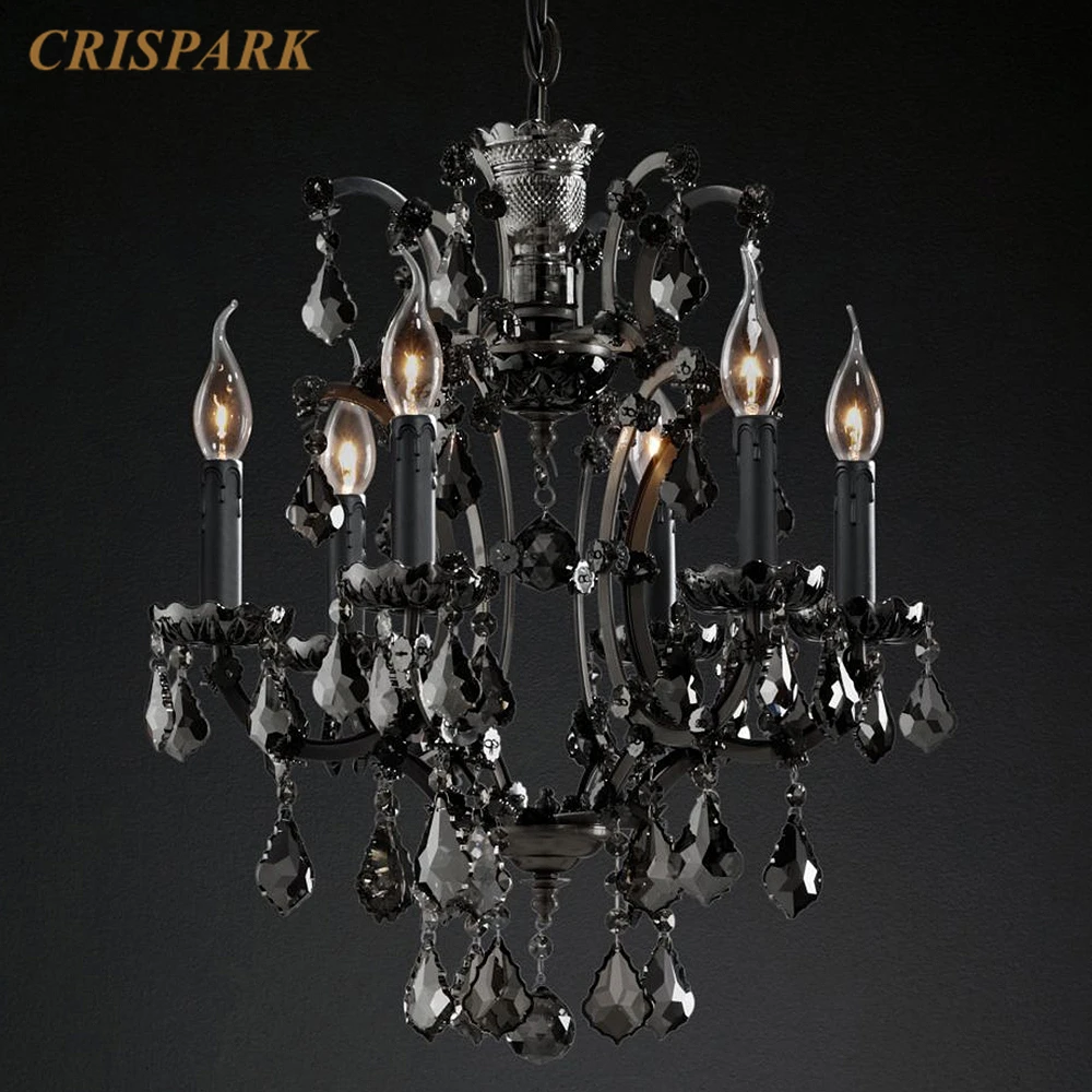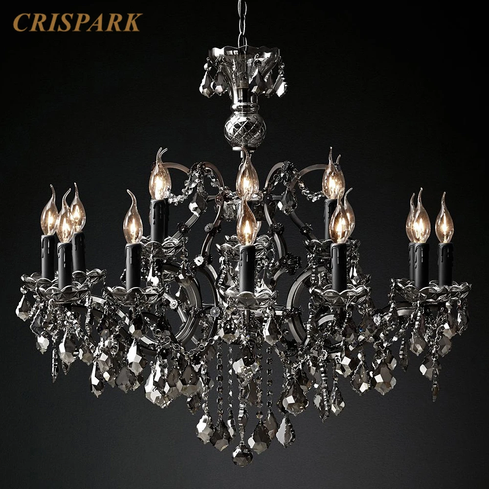 19th C. Rococo Iron & Crystal Round Chandelier LED Traditional Smoky Chandelier Lamp Home Light Fixture for Living Room Bedroom