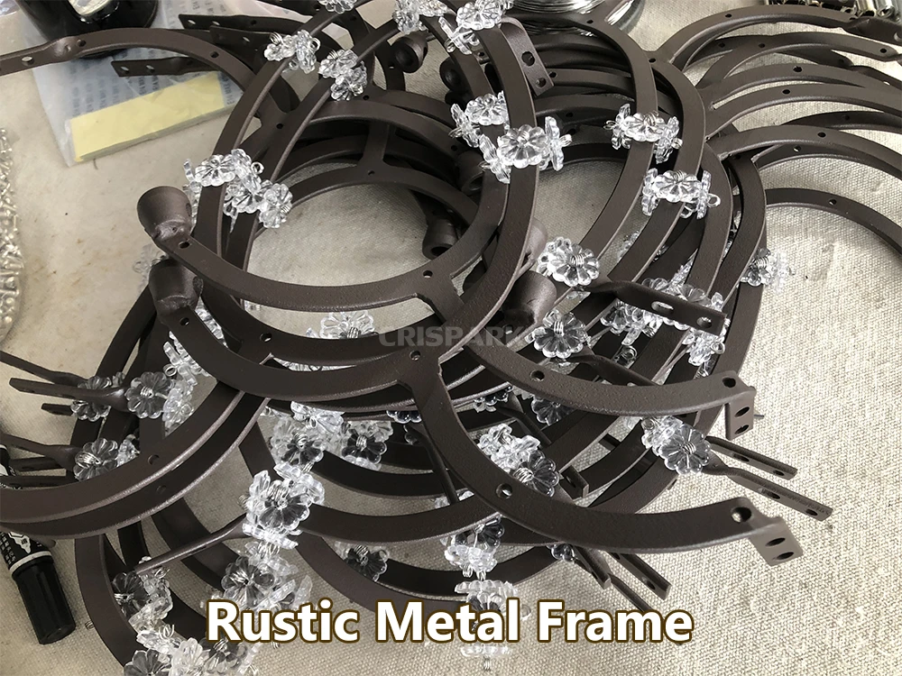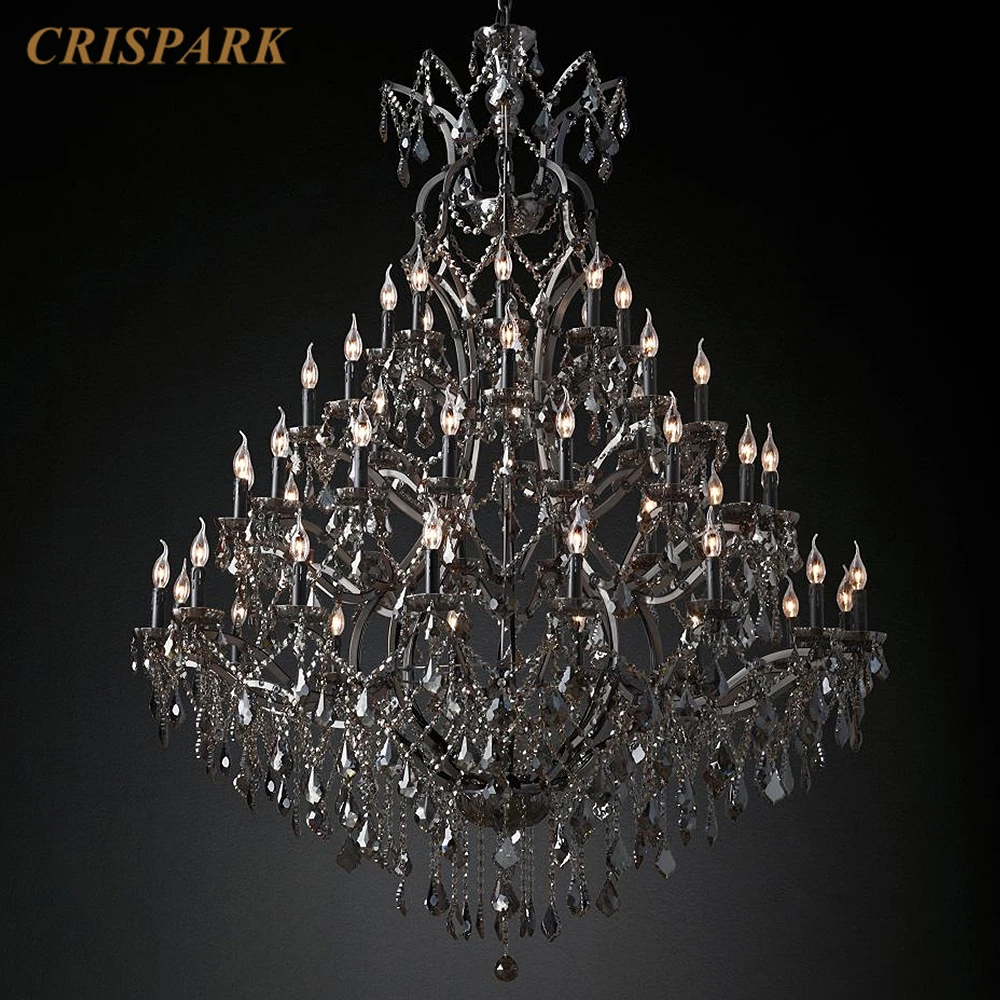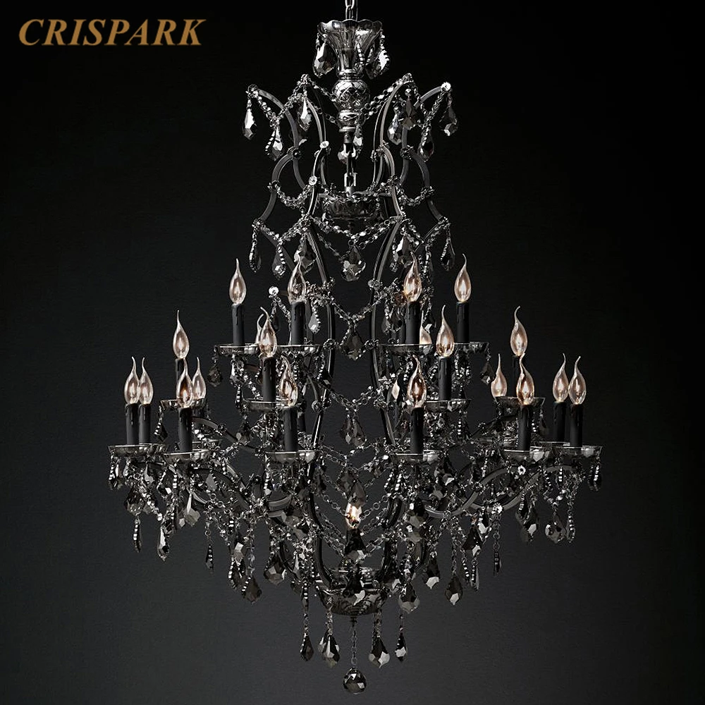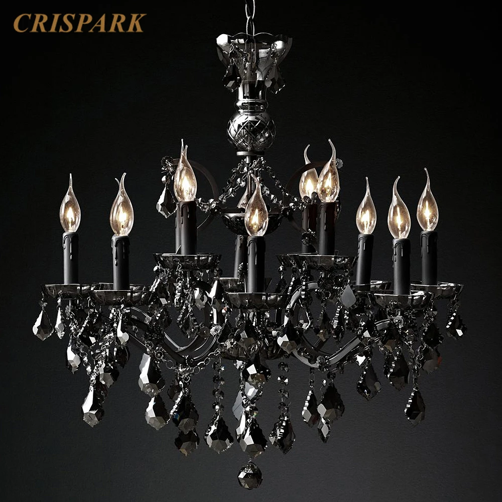 19th C. Rococo Iron & Crystal Round Chandelier LED Traditional Smoky Chandelier Lamp Home Light Fixture for Living Room Bedroom