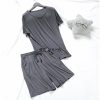 2 bộ giá vài bộ pyjama nam mùa hè lụa ngắn tay quần đùi phục vụ tại nhà cho phụ nữ bộ đồ lụa mô phỏng mỏng mùa hè