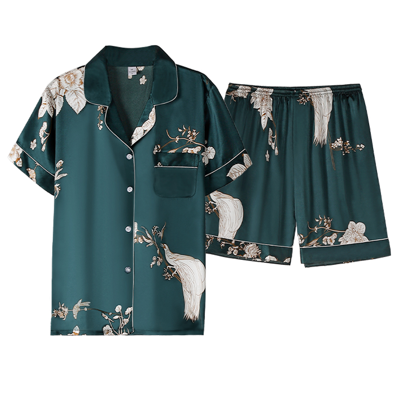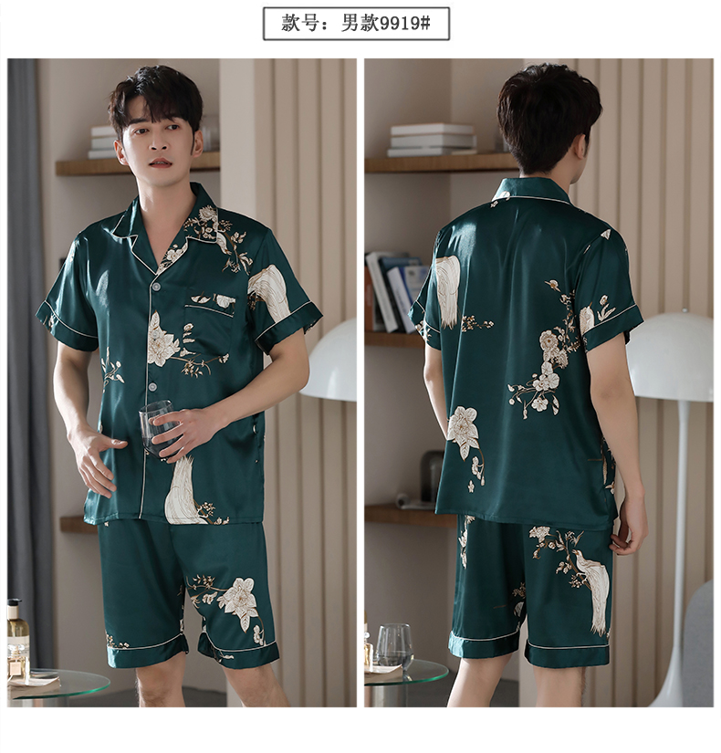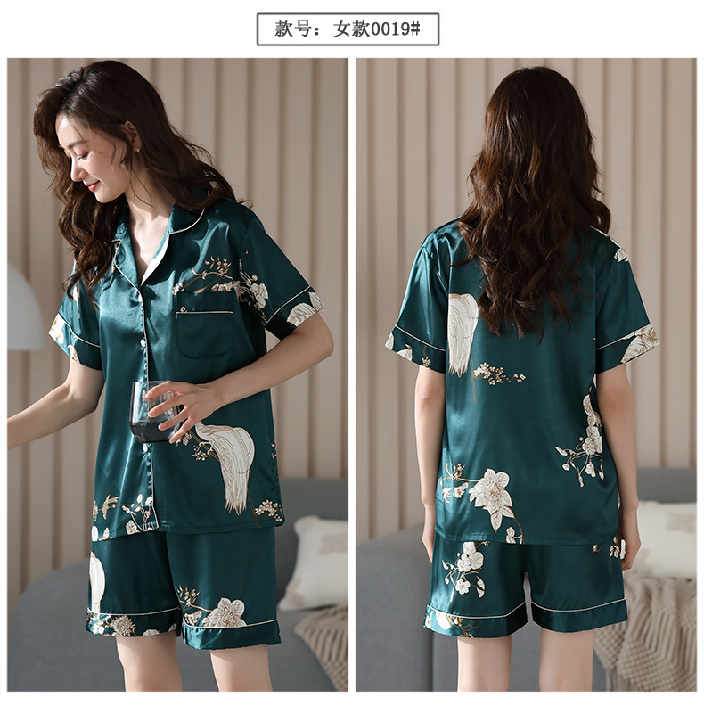 2 bộ giá vài bộ pyjama nam mùa hè lụa ngắn tay quần đùi phục vụ tại nhà cho phụ nữ bộ đồ lụa mô phỏng mỏng mùa hè