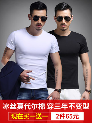 2 cái) Áo thun ngắn tay phương thức của nam giới mùa hè và mùa xuân cotton trắng bó sát áo sơ mi phía dưới băng lụa màu rắn nửa tay áo trên