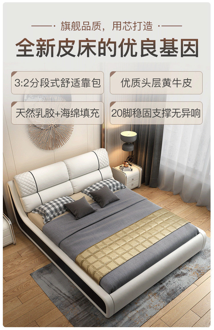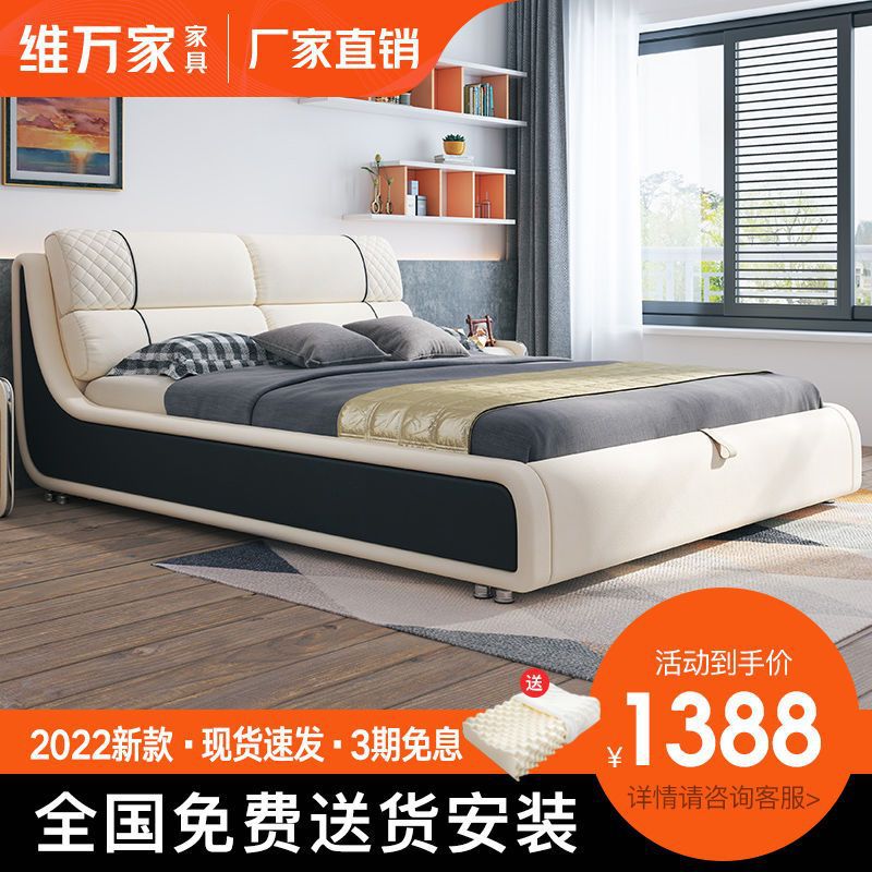 2020 mới sang trọng giường lớn giường da giường đôi giường mềm giường master phòng ngủ lưu trữ đa năng giường cưới đơn giản giường da