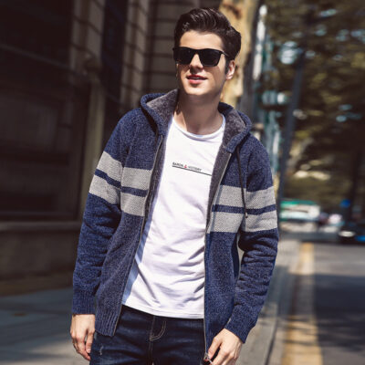 2020 Mùa Đông Mới Cardigan Có Mũ Nam Âu Mỹ Nỉ Plus Áo Len Dày Trẻ Trung Hoodie 8303