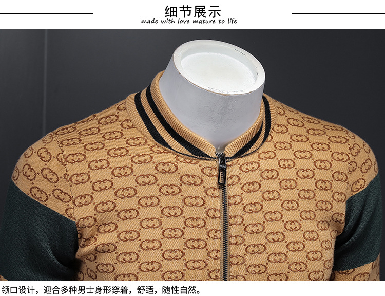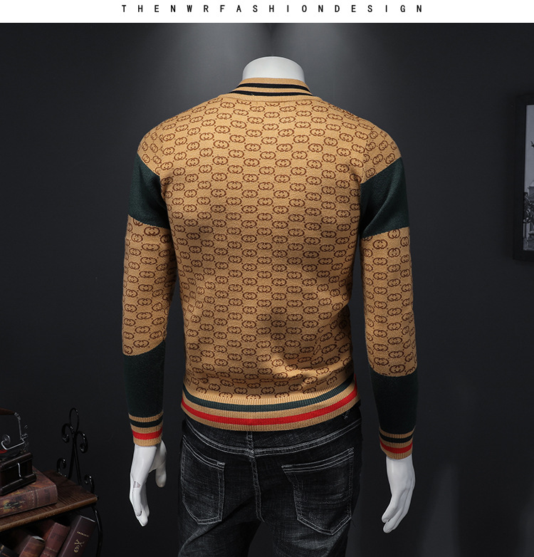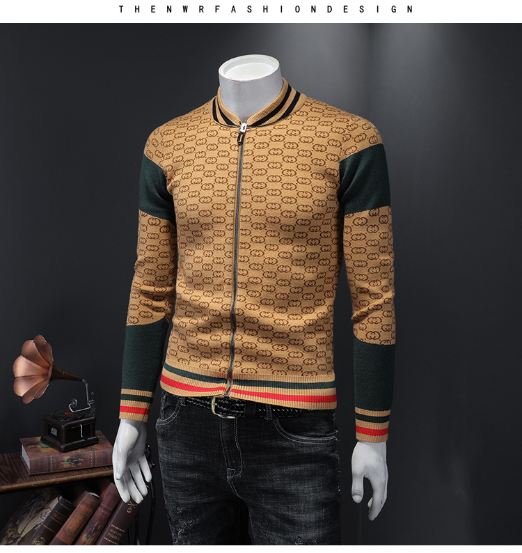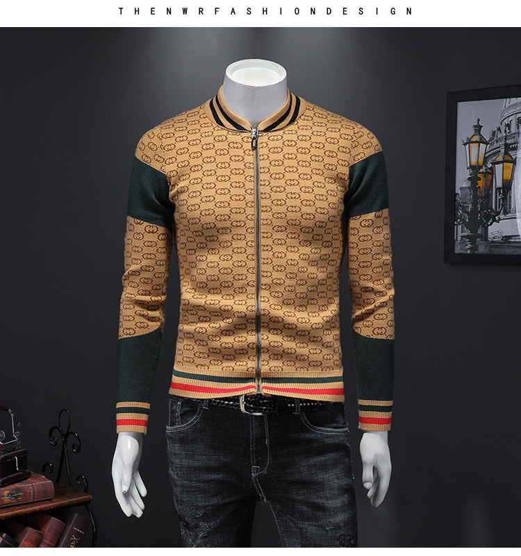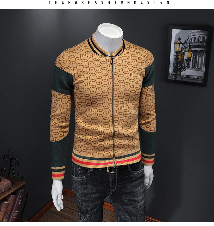 2020 mùa thu đông mới cardigan dệt kim nam phiên bản Hàn Quốc cổ tròn dáng ôm cổ bóng chày in hình thời trang trẻ trung áo khoác len