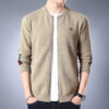 2020 Mùa Thu Đông Nam Bóng Chày Cổ Áo Len Cardigan Sọc Trẻ Trung Phong Cách Hàn Quốc Dạ Nỉ Cổ Dây Kéo Áo Len Áo Khoác