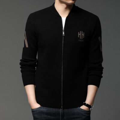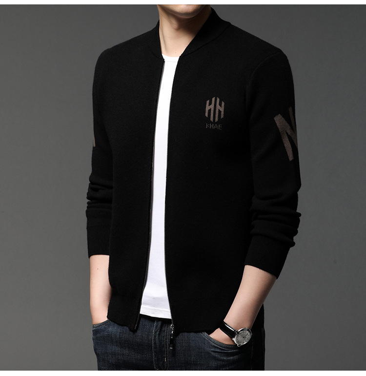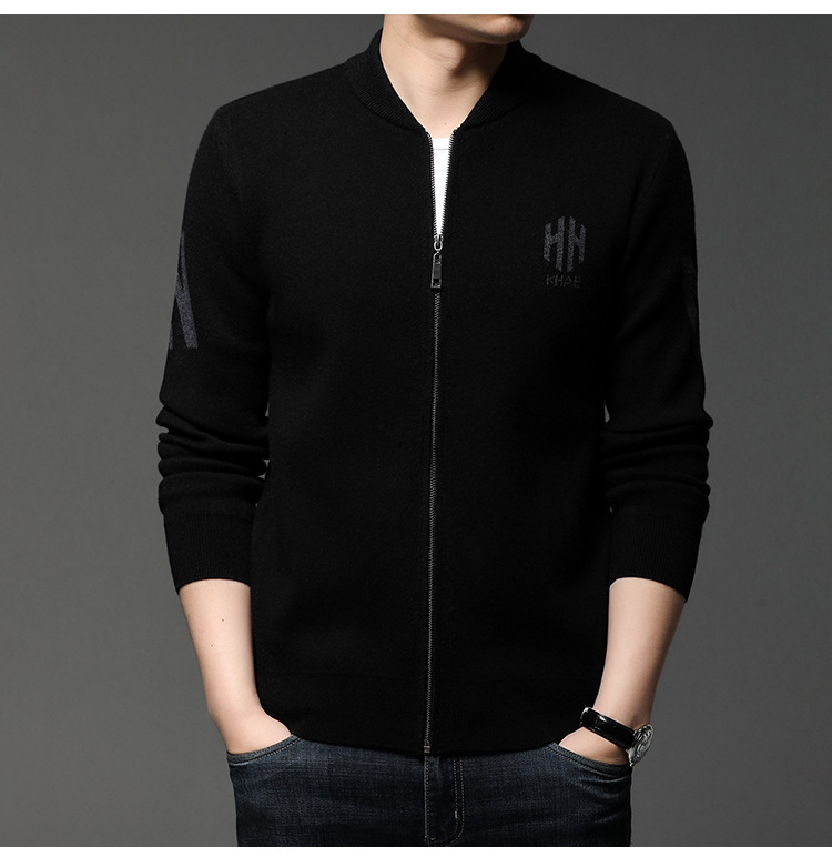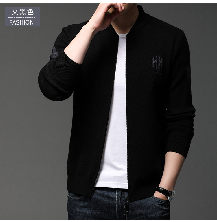 2021 mới đồng phục bóng chày áo khoác nam mùa xuân và mùa thu giản dị cho người trung niên và thanh niên áo len dệt kim áo len nam in hình hợp thời trang giao hàng tận nơi