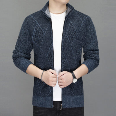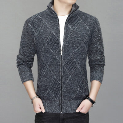 2021 Mới Mùa Thu Đông Nam Dệt Kim Cardigan Dài Tay Plus Nhung Dày Cổ Đứng Dạ Nỉ Nam Áo Bóng Chày Bán Buôn